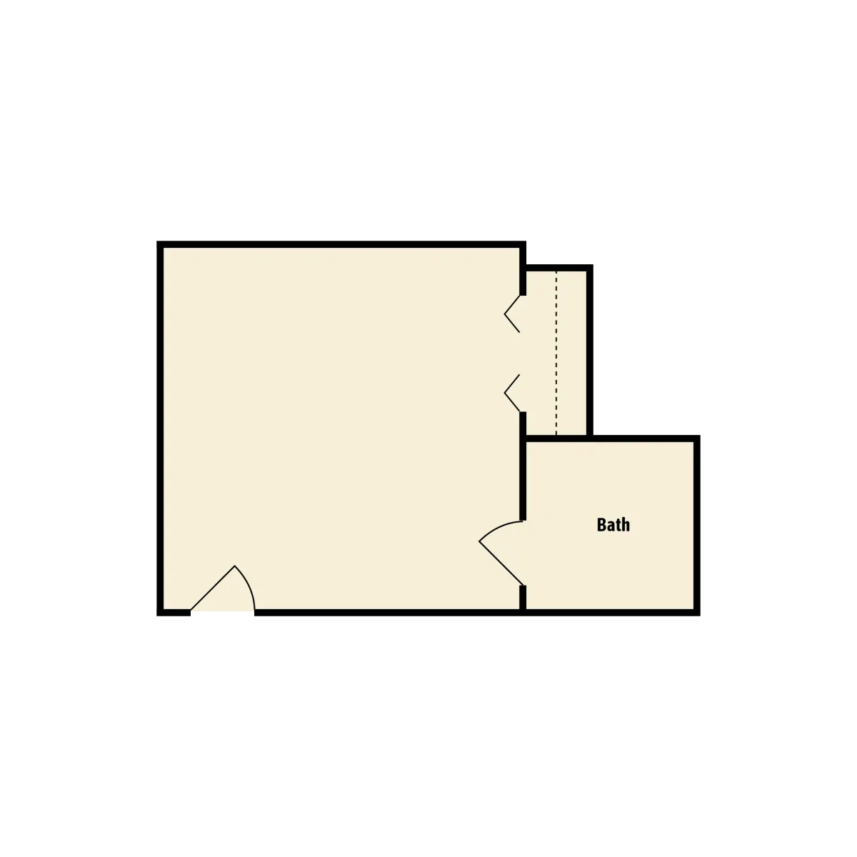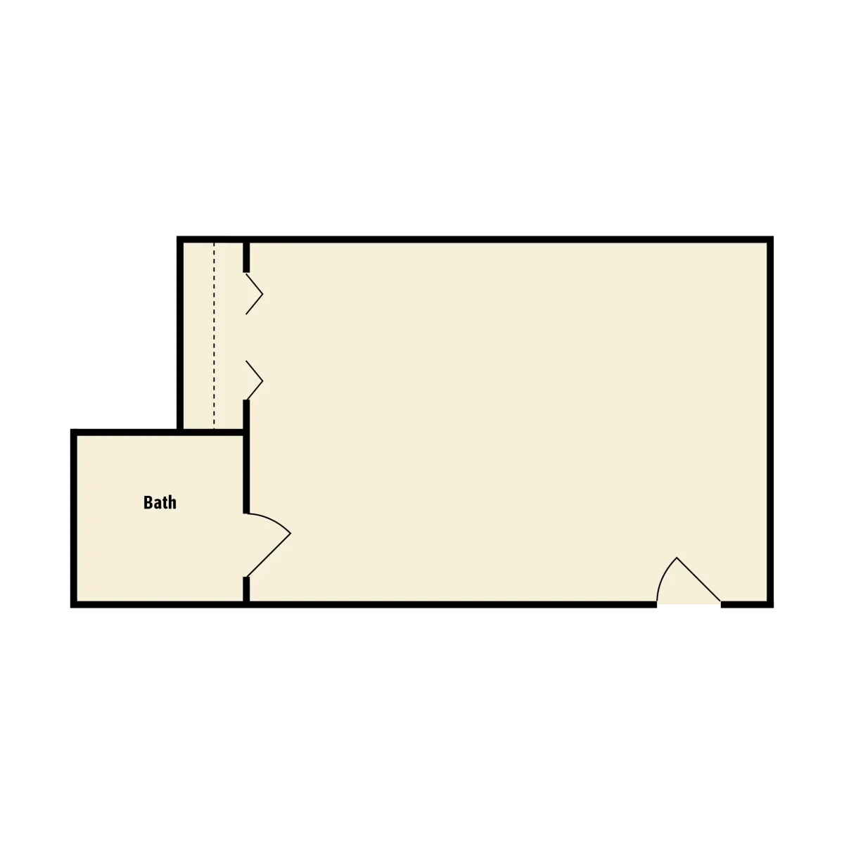 A studio with added living space for seating and personal items, offering a bit more room to spread out.